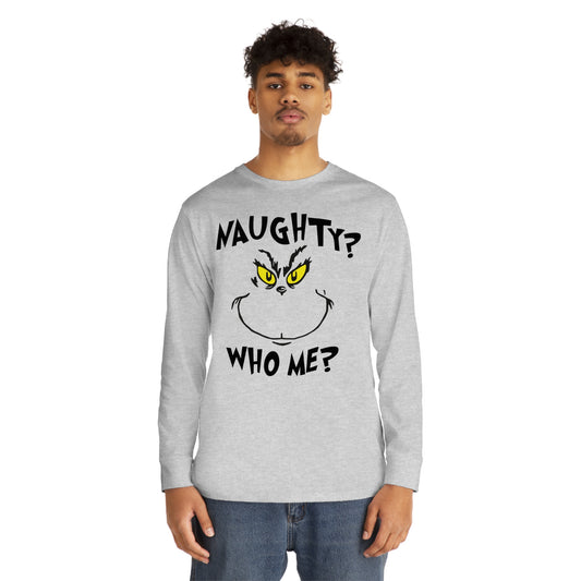 Naughty Who Me? Grinch Christmas Long Sleeve T-Shirt