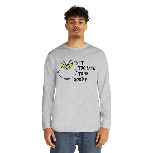 Is It Too Late To Be Good? Grinch Christmas Long Sleeve T-Shirt