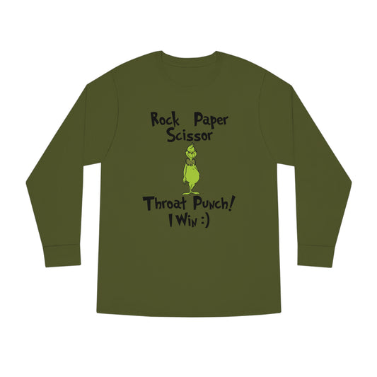 Rock, Paper, Scissors, Throat Punch. I Win! Grinch Christmas Long Sleeve T-Shirt