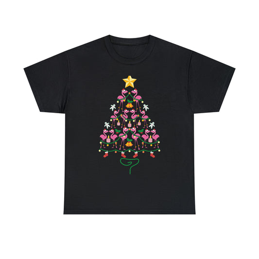 Flamingo Christmas Tree Christmas Short Sleeve Tee