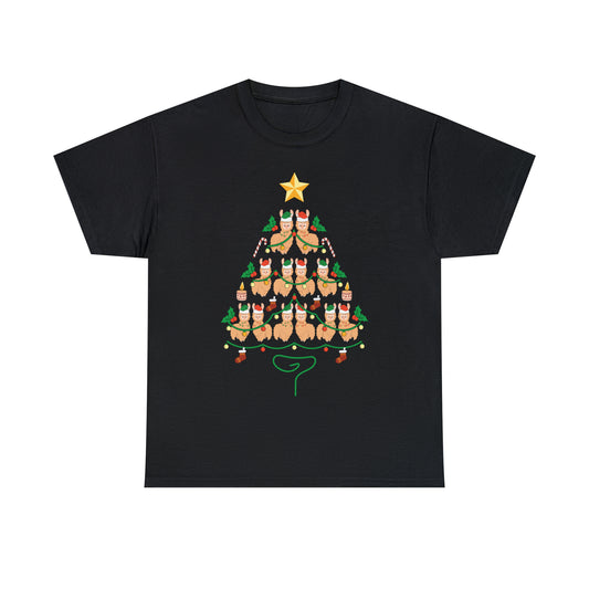 Llama Christmas Tree Christmas Short Sleeve Tee