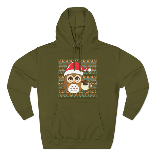 Owl in Santa Hat Ugly Christmas Sweater Pullover Hoodie