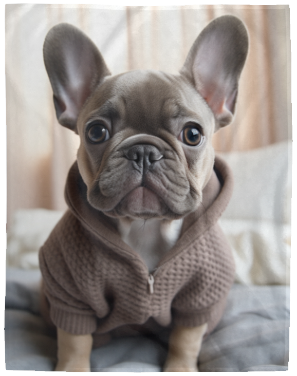 Wrap yourself in a cozy luxurious velvety soft blanket featuring an adorable french bulldog design. This soft and plush blanket is perfect for cuddling up on chilly nights or adding a touch of canine charm to your living space. Crafted with care and printed with vivid color, our fleece blanket with frenchie motif is a must-have for all dog lovers seeking warmth and style in one delightful package. Available in three sizes: 30x40", 50x60", 60x80". One sided print.