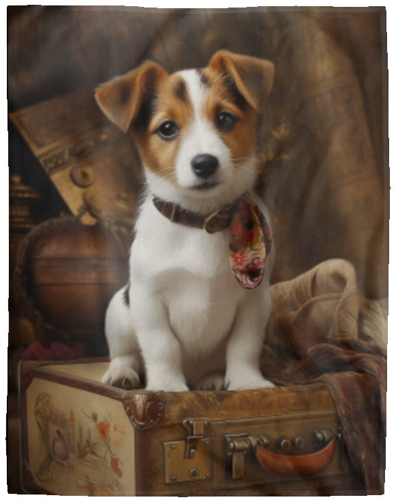 Wrap yourself in a cozy luxurious velvety soft blanket featuring an adorable jack russell design. This soft and plush blanket is perfect for cuddling up on chilly nights or adding a touch of canine charm to your living space. Crafted with care and printed with vivid color, our fleece blanket with Jack Russell motif is a must-have for all dog lovers seeking warmth and style in one delightful package. Available in three sizes: 30x40", 50x60", 60x80". One sided print.