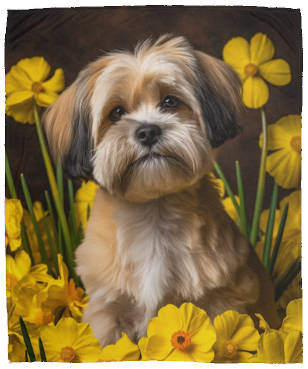 Wrap yourself in a cozy luxurious velvety soft blanket featuring an adorable Lhasa Aspo design. This soft and plush blanket is perfect for cuddling up on chilly nights or adding a touch of canine charm to your living space. Crafted with care and printed with vivid color, our fleece blanket with Lhasa Apso motif is a must-have for all dog lovers seeking warmth and style in one delightful package. Available in three sizes: 30x40", 50x60", 60x80". One sided print.