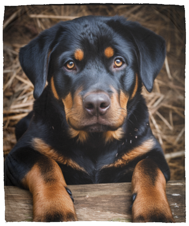 Wrap yourself in a cozy luxurious velvety soft blanket featuring an adorable rottweiler design. This soft and plush blanket is perfect for cuddling up on chilly nights or adding a touch of canine charm to your living space. Crafted with care and printed with vivid color, our fleece blanket with Rottweiler motif is a must-have for all dog lovers seeking warmth and style in one delightful package. Available in three sizes: 30x40", 50x60", 60x80". One sided print.